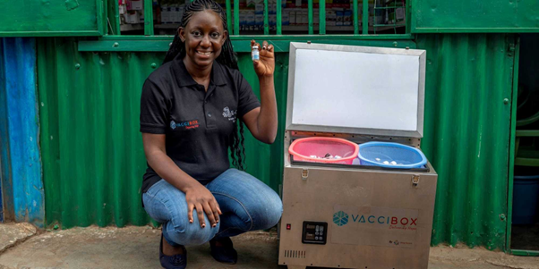 Son invention phare, la Vacci Box : un petit réfrigérateur mobile, robuste, alimenté à l’énergie solaire, facilement transportable